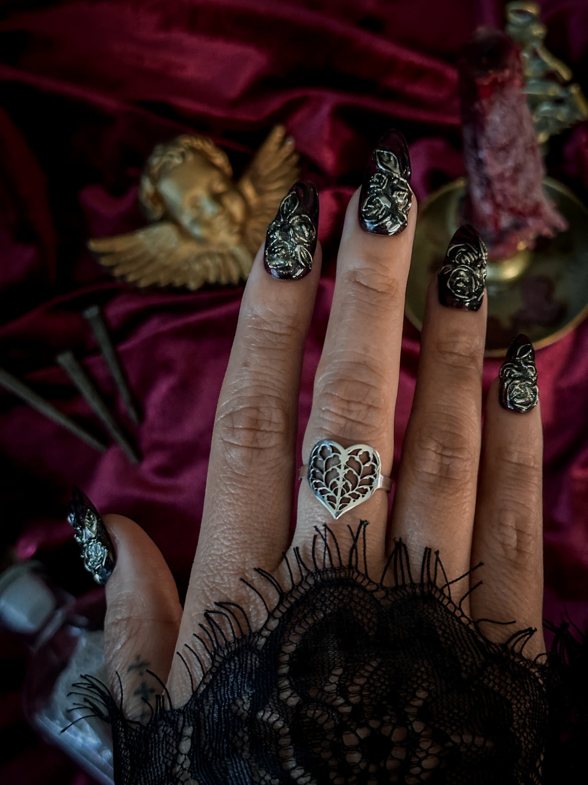 ✶ Choose your ring size in the drop down menu. If you require a different size not listed in the menu or are unsure of your size, choose the first option in the dropdown menu. You may also add a ring sizer to your order for an additional $3. It will be sent as soon as possible so that you may determine your size. Then send an email to contact@hauntspell.com with your desired size or if you need help using the ring sizer.